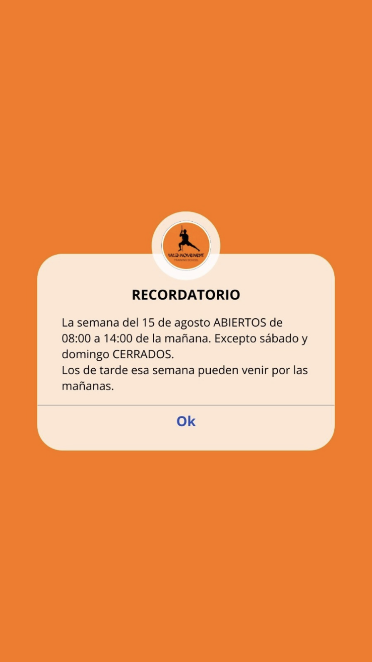 La semana del 15 de agosto ABIERTOS de 08:00 a 14:00 de la mañana. Excepto sábado y domingo CERRADOS. Los de tarde esa semana pueden venir por las mañanas.