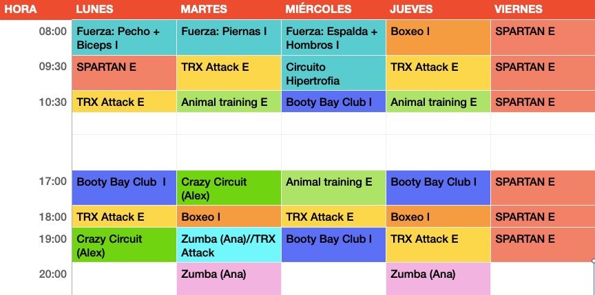 Aquí tenéis el horario con nuestras nuevas clases. ¡Esperamos que os guste y sobre todo que lo disfrutéis!