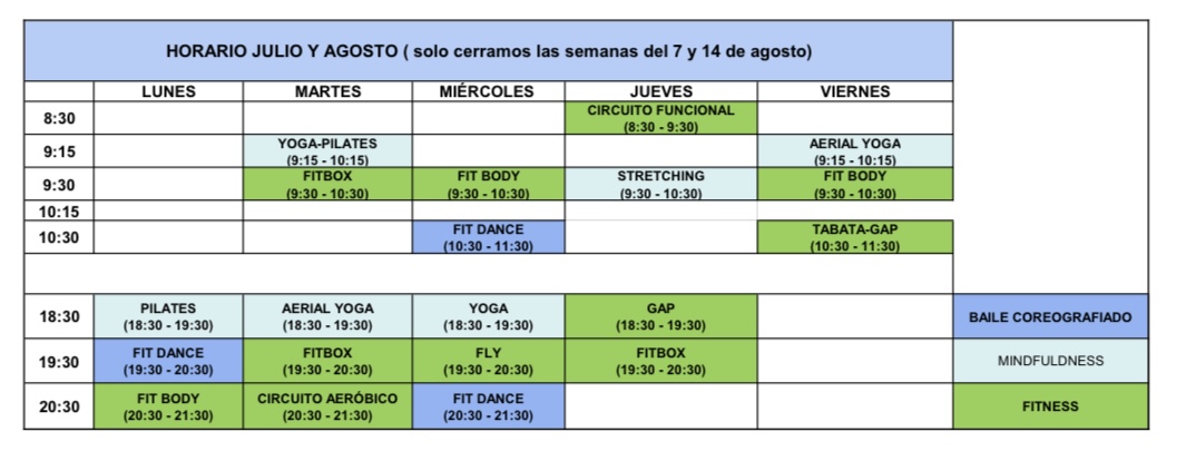 Aclararos también que el gimnasio de Masnou estará cerrado las semanas del 7 y 14 de agosto pero el gimnasio de Alella no cerrará ningún día.